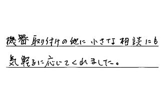 営業担当者の方が、当方の意向にそうように、工事日をセットしてくれたので、ありがたかった。営業・工事ともに時間に正確。評価できます。