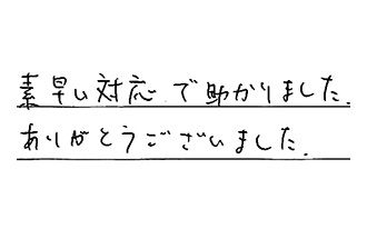とてもスピーディにしてもらい、大変ありがたく思っています。又、宜しくお願い致します。