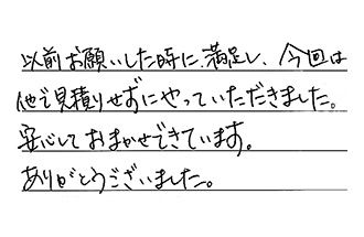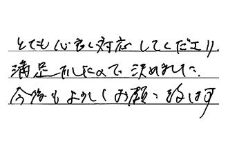 とても快く対応してくださり、満足でしたので決めました。今後もよろしくお願い致します。
