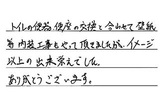 口コミ通り、大変満足でした。次回もまた何かあれば、最初に相談・利用させて頂きます。ありがとうございました。