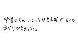 依頼をしてから施工までのスピードと、営業の方の説明も明確だったので、信頼できて安心でした。ありがとうございました。