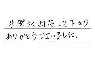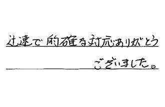 対応のスピード及び内容に、大変満足しました。次回も取扱いの商品がありましたら、依頼したいと思います。