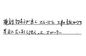 電話対応が良く、スムーズに工事の話しができ、早目に対応してもらった。スピーディー。