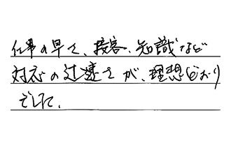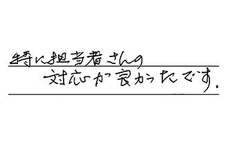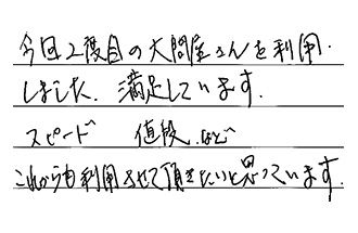 大変丁寧な対応をしていただき、安心してお願いする事ができました。又何かの時には、お願いしたいと思っております。ありがとうございました。