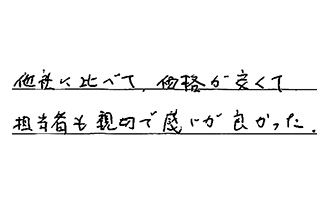 施工まで、他の業者に比べ、早く、金額も安かったので、よかったです。機会があれば、またおねがいします。