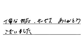 こちらの都合で作業予定日を何度か変更して頂きましたが、親身に対応して頂き、大変助かりました。作業も早く、お昼頃には終わりました。ありがとうございました。