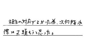 大変気持良く対応していただきました。ありがとうございます。