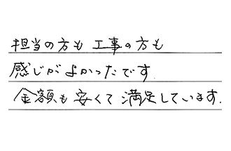担当の方も工事の方も、感じがよかったです。金額も安くて満足しています。