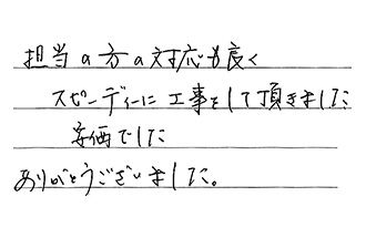 担当の方の対応も良く、スピーディーに工事をして頂きました。安価でした。ありがとうございました。