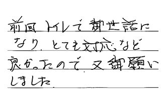 トイレが、とてもきれいになりました。節水型で、水道代も減りそうです。早々の対応、ありがとうございました。
