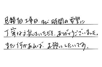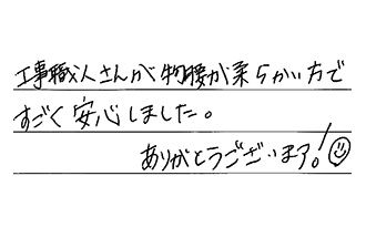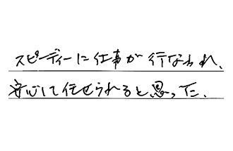見積り日、工事日、及び時間の要望に、丁寧な対応をいただき、ありがとうございました。また何かあれば、お願いしたいです。