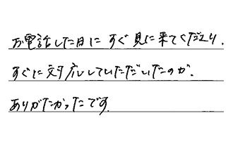 対応が早く、良かったです。施工時もスピーディで、丁寧にして頂きました。