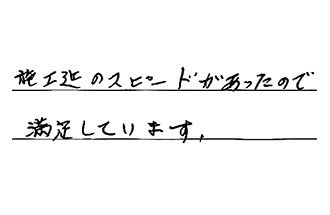 最初の他社の見積額がとても高く、少しでも安くならないかと、CMで知っていた大問屋さんにTEL→訪問→契約→工事とスムーズに進みました。金額も大変安く、担当・事務員さんも、とても感じの良い方でした。っ今回は、ありがとうございました。