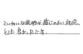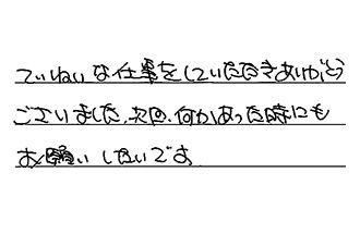 ていねいな仕事をしていただき、ありがとうございました。次回、何かあった時にも、お願いしたいです。