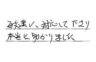 全てにおいて「スピーディ」で、感服しました。これで清々しい新年を迎えられます。ありがとうございました。
