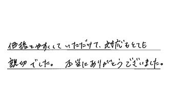 価格をやすくしていただけて、対応もとても親切でした。本当にありがとうございました。
