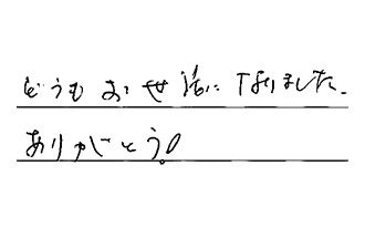 安くして頂き、ありがとうございました!また、他でも頼みたいと思いますので、どうぞよろしくお願い致します。